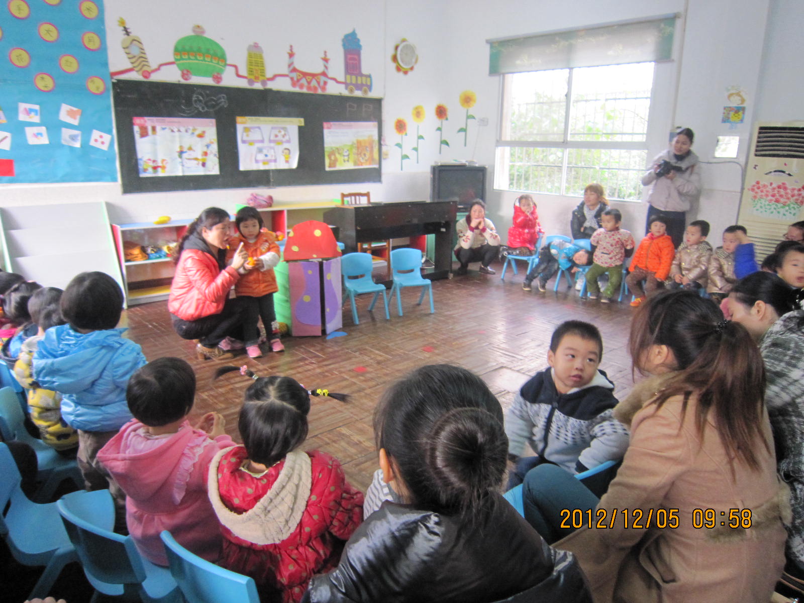 当天上午家长一早带着孩子,观看和参入了孩子在园的一日活动,全面了解了孩子在园学习和生活情况。各班的教学活动结束以后,召开了全体家长座谈会,会上园长赵伶俐同志汇报了幼儿园今年的工作情况,副园长徐志华传达了教育部十月份正式印发的《3-6岁儿童学习与发展指南》的精神。在座淡会上,家长在充分肯定了幼儿园工作的同时,提出了一些宝贵的建议和意见。针对相关问题我们进行了答疑和解决,并对家长关心的,需要解决的关于进一步改善设施玩具,利用多种途径加强家园联系,不断稳定和提高教师队伍等问题,也给予了答复。这次活动有效地促进了家园联系,增进了家长与幼儿园的沟通和交流。